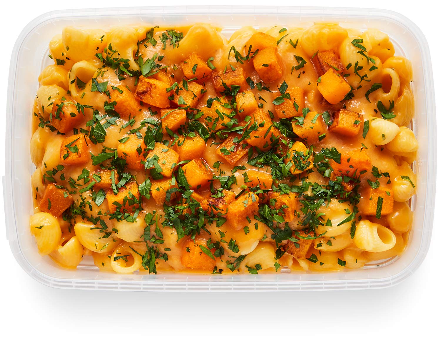 Macaroni and butternut squash in a creamy, flavorful plant-based sauce