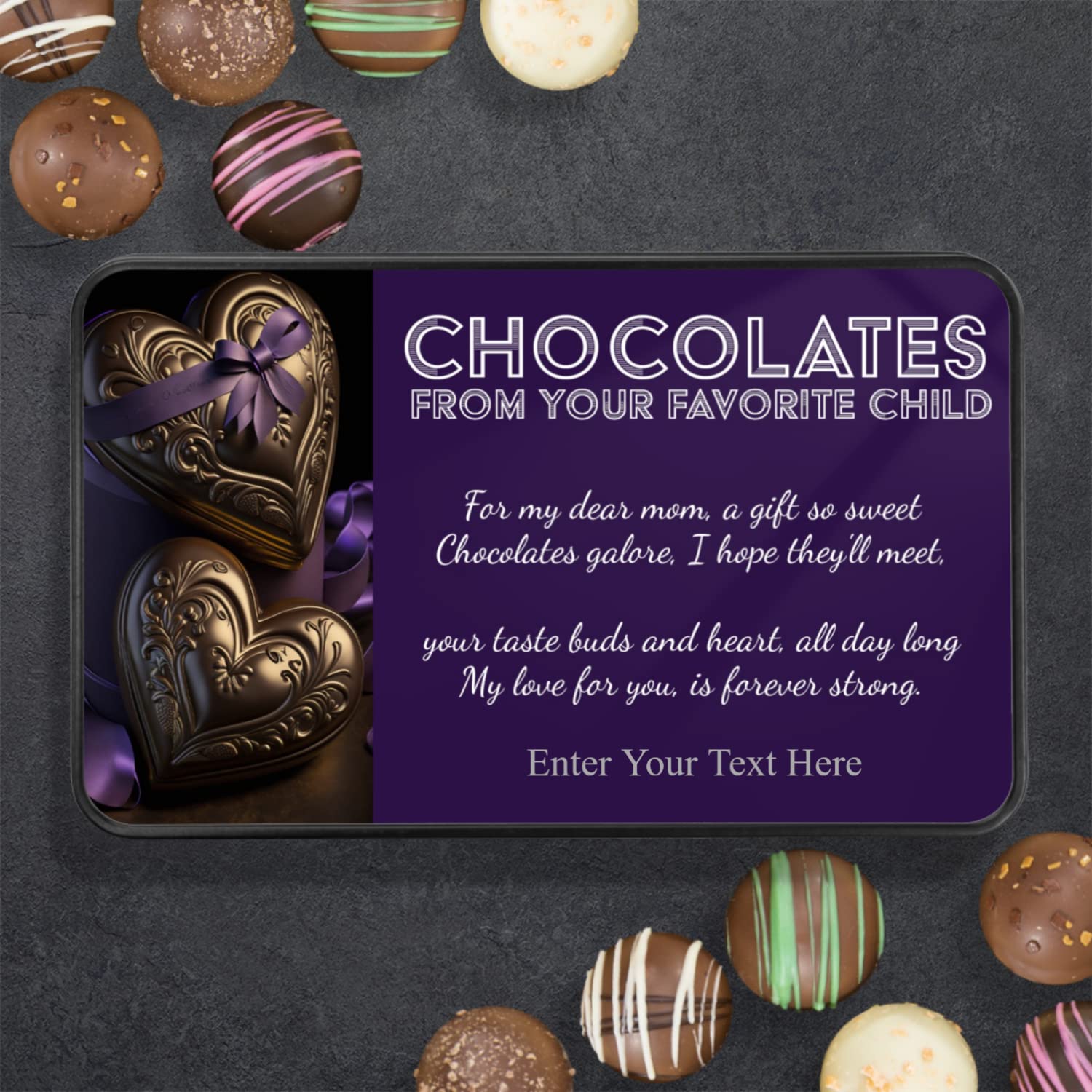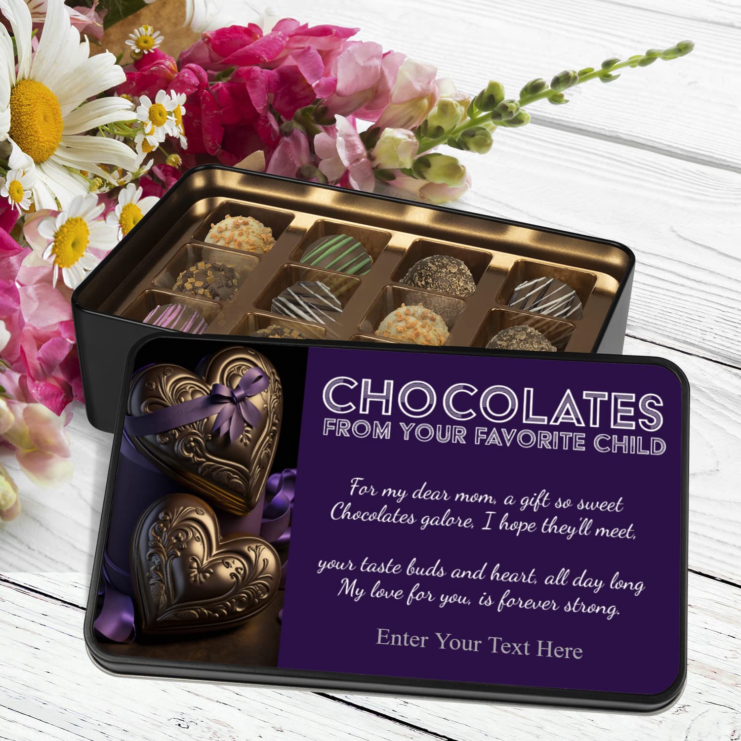 To Mom From Your Favourite Child Personalized Handmade Chocolates In Keepsake Tin - Gifts For Mom - Mom Gifts Gifts For Her Gifts For Women With Personalized Text