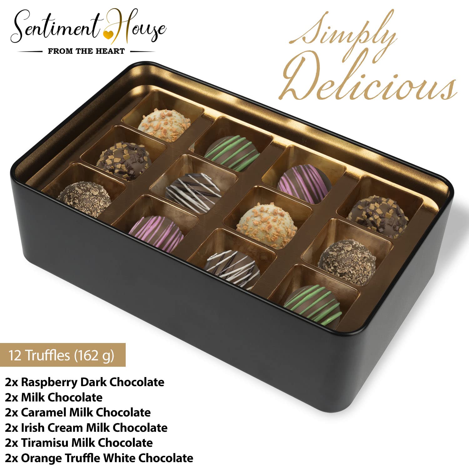 About Our Truffles Our artisan truffles have been manufactured by the same New England family since 1915 using traditional recipes to deliver a truly amazing truffle. Using only the finest ingredients such as cocoa butter and ethically sourced cocoa our truffle packages are sure to deliver the perfect taste and texture even to the most discerning of palates. Description Whatever the occasion or whoever you want to treat, then our handmade chocolate truffles with accompanying personalized message tins make the perfect gift. Our scrumptious bite sized truffles are hand made in New England and make a truly decadent treat. We truly believe you won’t have tasted chocolates this nice. All our chocolates come with a fantastic, personalized message tin, guaranteed to bring a feeling of warmth and comfort to the recipient and, when the chocolates are finished, they can keep the tin as a memento and reminder of your love and best wishes. We have messages and designs for 100s of occasions from birthdays, to wedding anniversaries, father’s day, engagements, valentines’ messages and more. With Love-Chocs the recipient gets not only a true message of your love but an amazing range of chocolates for them to savour.