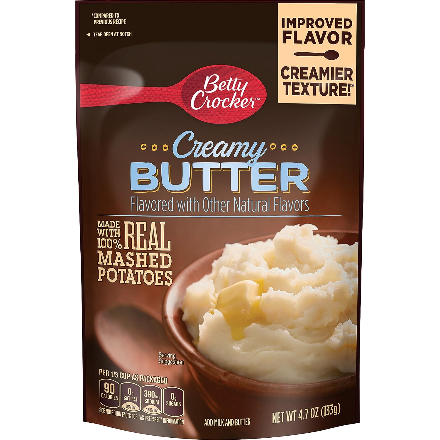 Made with 100% real mashed potatoes and delicious butter flavor. Its creamy and delicious as is, or add your own twist. These 100% American Grown Potatoes make a perfect side dish for your family meal.