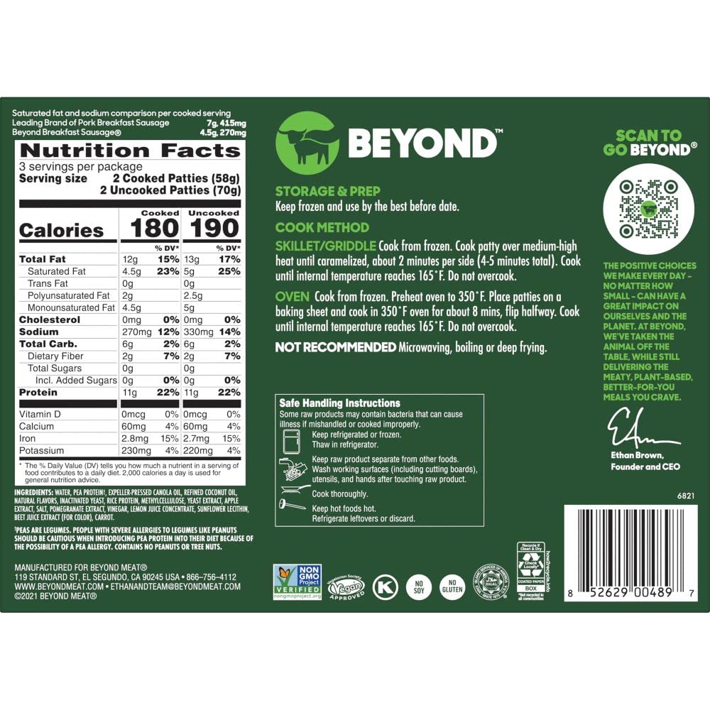 Beyond Breakfast Sausage Plant-Based Patties Box,6 Pack,7.4 Oz