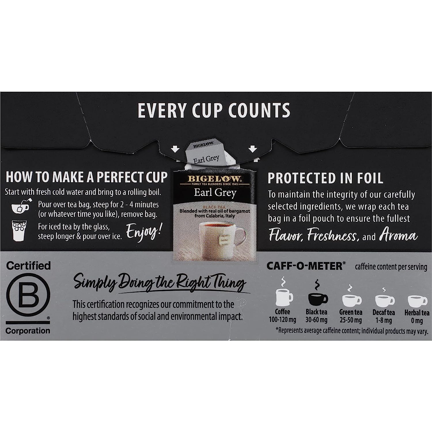 Bigelow Tea Earl Grey Black Tea, Caffeinated, 120 Total Tea Bags, 20 Count (Pack of 6)