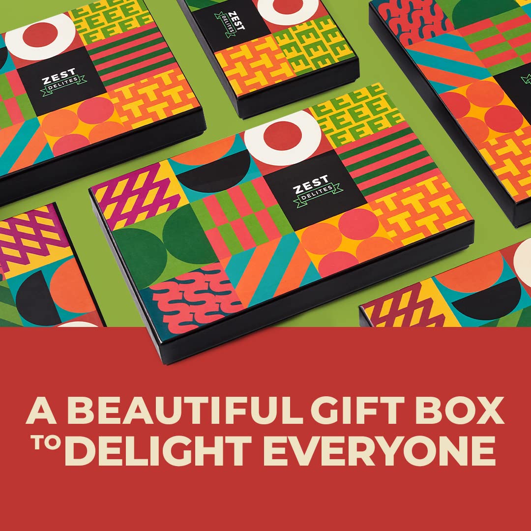 Zest Delites Gourmet Vegan Food Gift Box - Turkish Delight Candy Box, Fruit Ingredients; Orange, Vanilla, Pomegranate, Black Mulberry and Pistachio Nuts, Birthday Gift for Her & Him, Soft Candy Snack Box