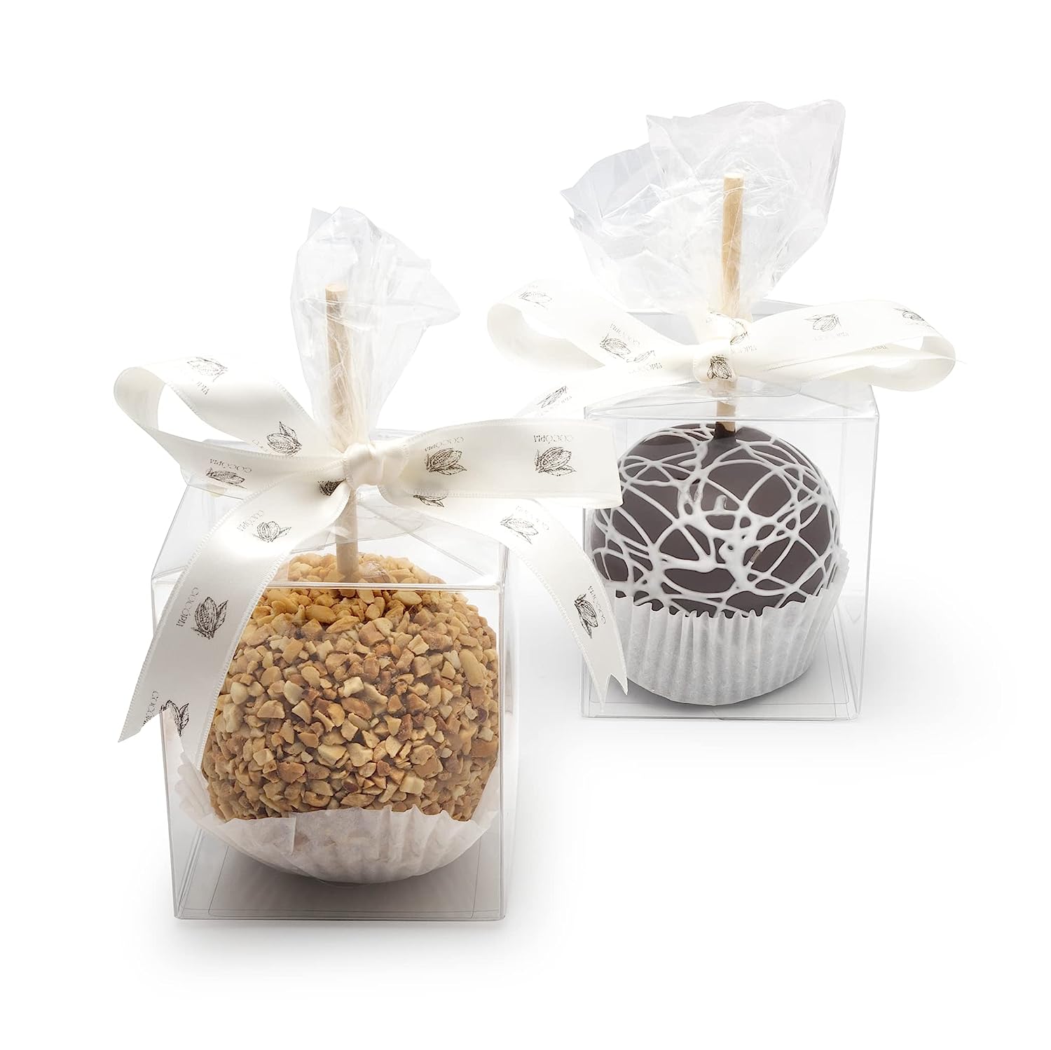 Our caramel apples are the perfect gift! Hand-dipped in homemade caramel and coated with rich dairy free Belgian chocolate, these individually wrapped treats are sure to put a smile on your special someone's face. And because they're dairy free and kosher, everyone can enjoy them! Gourmet candy doesn't get any better than this. Our caramel apples make the perfect treat or gift - either for yourself or that special someone. Enjoy a sweet and delicious snack without worrying about allergens - it couldn't be easier! Each apple is decorated with festive sprinkles that make it perfect for your special someone or as a party favor. Enjoy these delicious treats today—you won't regret it!