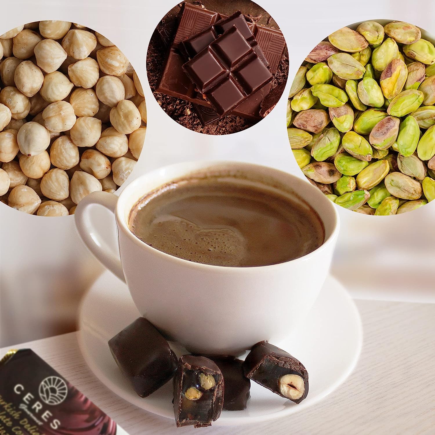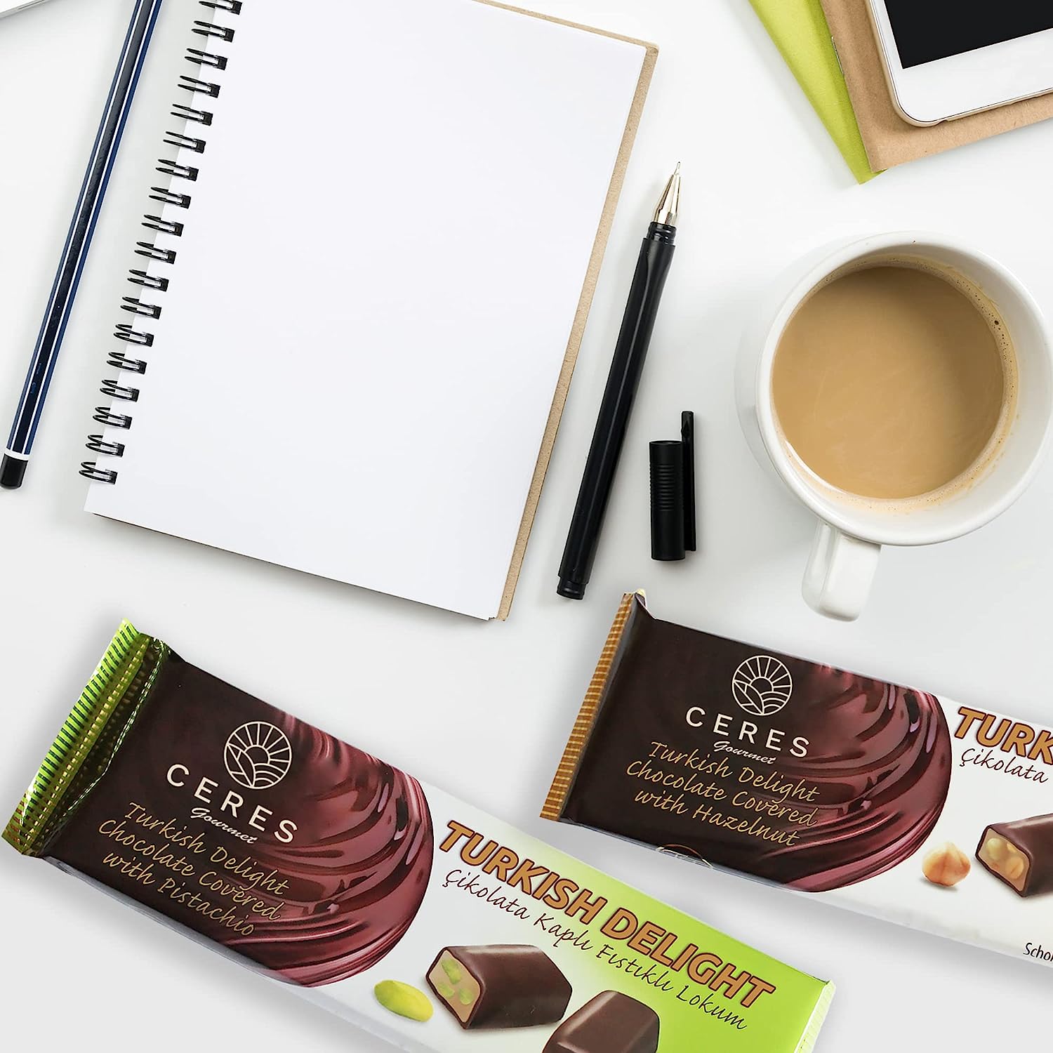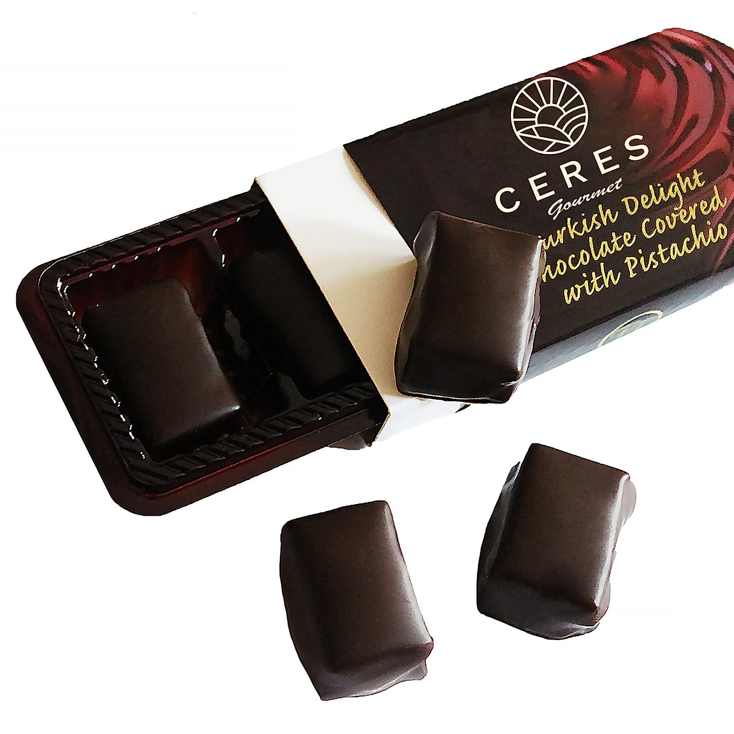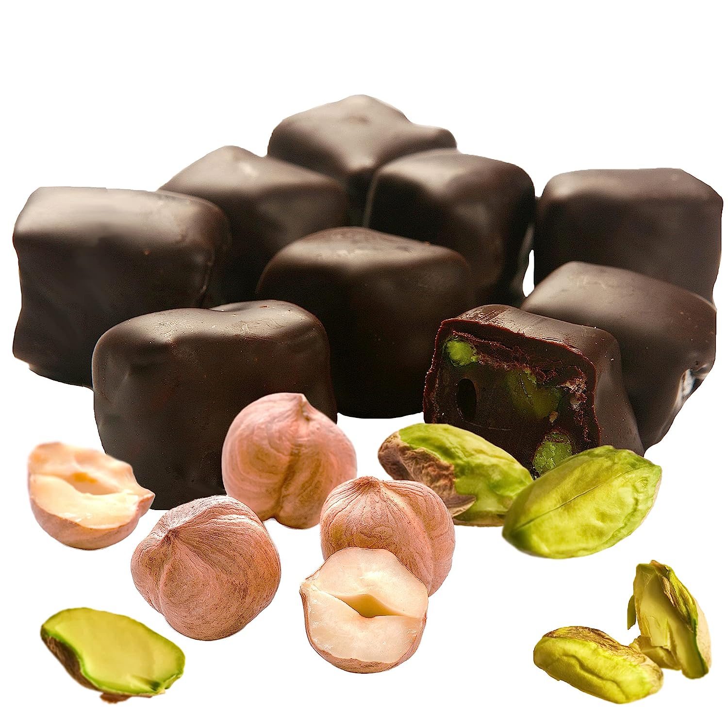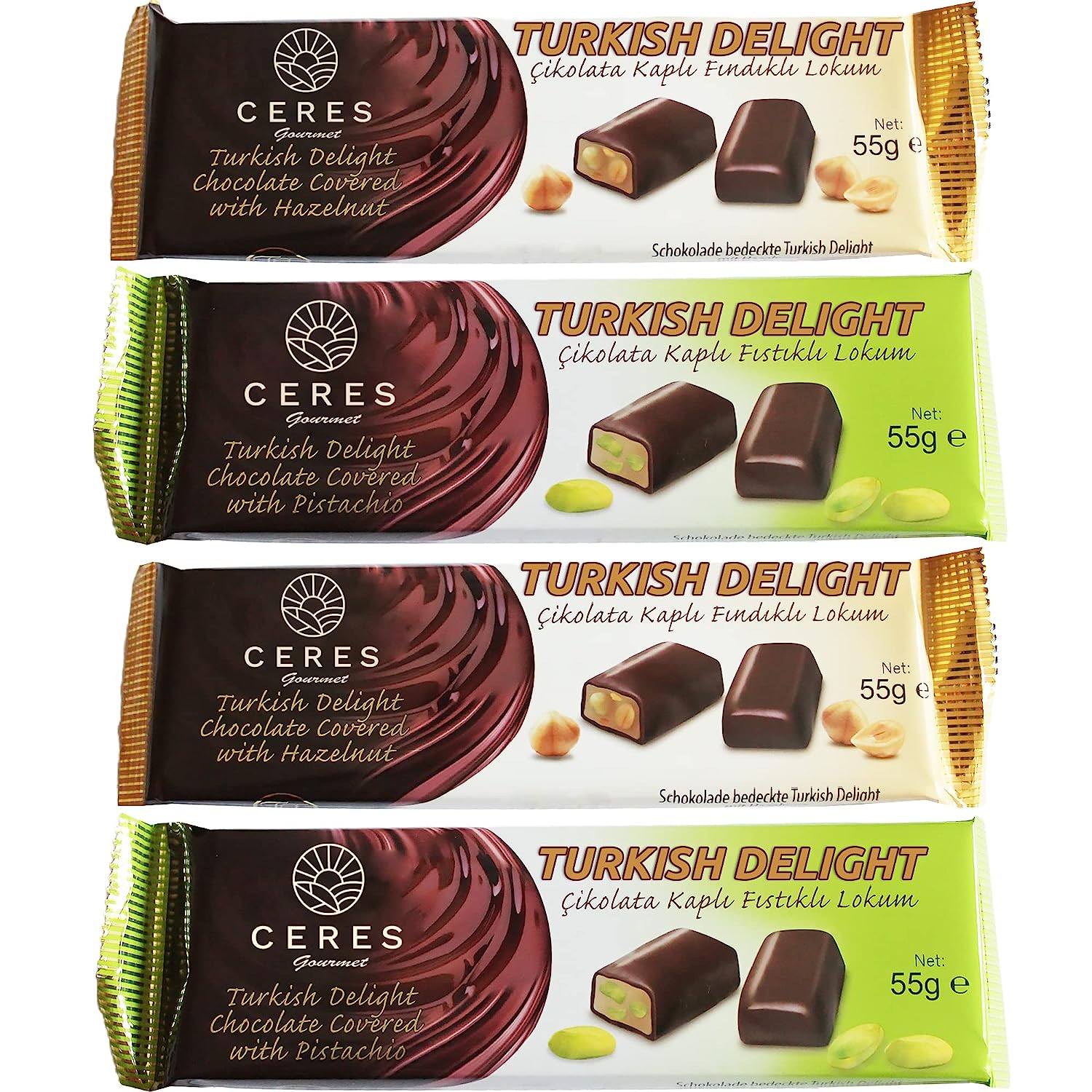 Chocolate Coated Turkish Delights Candy Bars with Hazelnuts and Pistachios, Traditional Luxury Chocolate Sweet Soft Candy Bars, Snacks Size Gourmet Lokum (Loukoumi), 4 Pcs Individual Packaging 7.76 Oz