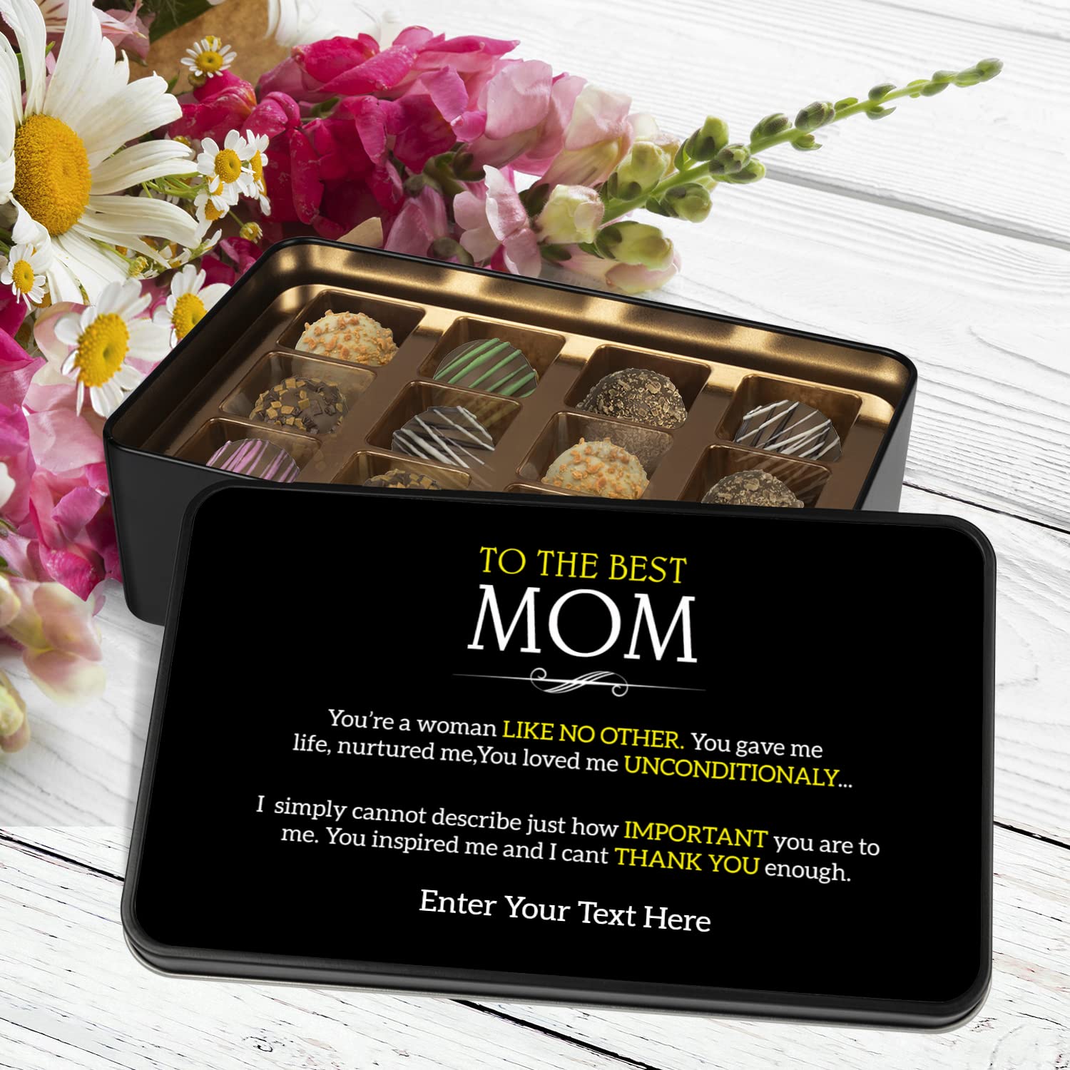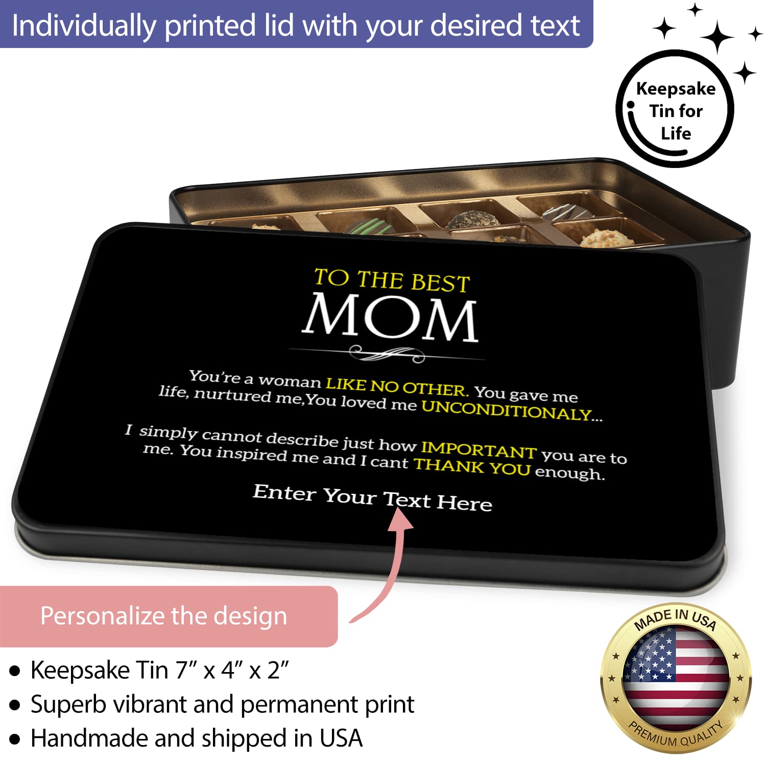 To The Best Mom Personalized Handmade Chocolates In Keepsake Tin - Gifts For Mom - Mom Gifts Gifts For Her Gifts For Women With Personalized Text