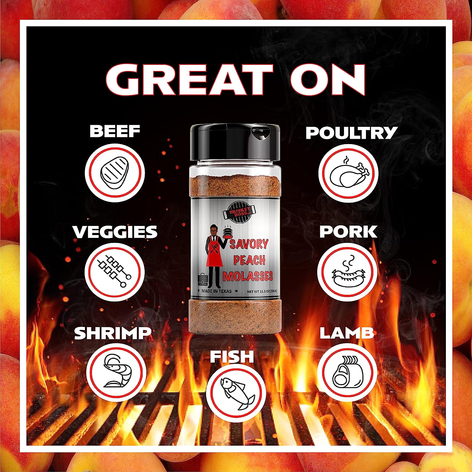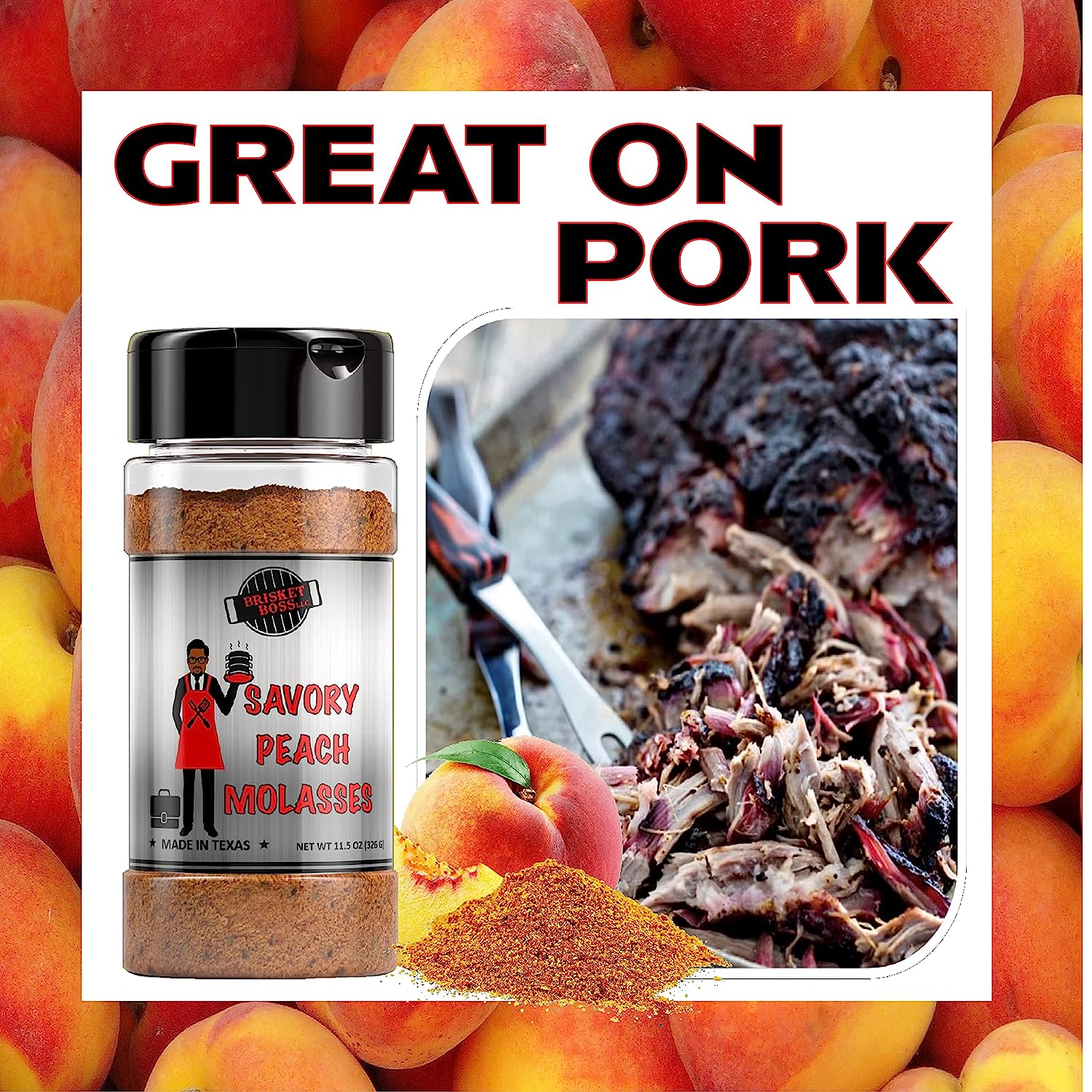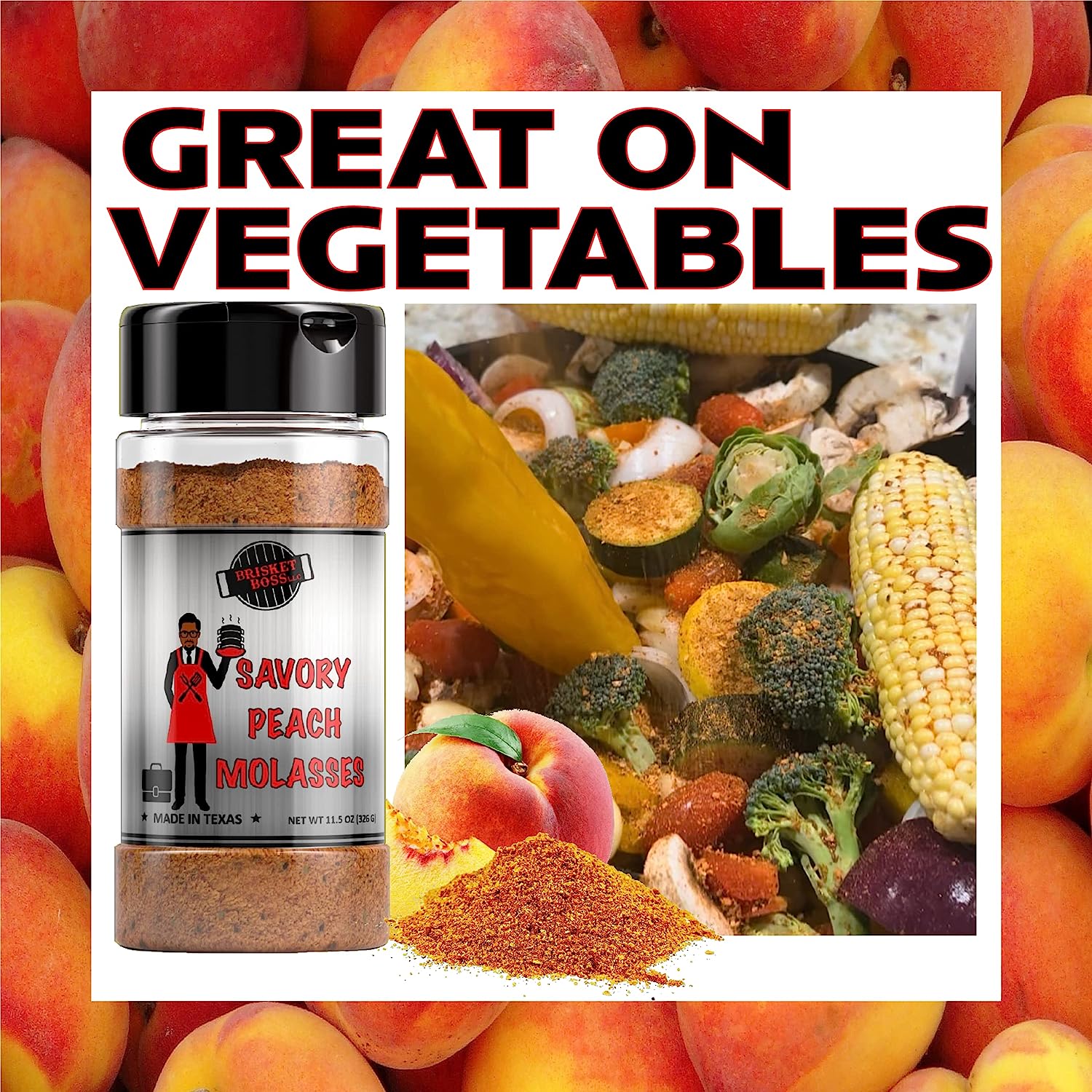 - MASTERFUL PEACH MOLASSES RUB: This unique blend of spices has a savory peach molasses flavor that enhances anything you choose. This all-purpose seasoning is a great addition to pork, seafood, beef, chicken, lamb, vegetables, even tofu!